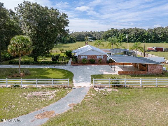 Welcome to your private oasis! This partially updated 3-bedroom, 2.5-bathroom ranch-style home spans 2,072 sq ft on 6.52 acres of gorgeous land - approximately 5 acres of it is pasture, with the rest lush grounds and amenities. Step inside and you'll be greeted by a warm, inviting family room centered around a classic wood-burning fireplace, perfect for cozy evenings. The home has some modern touches throughout that enhance comfort without losing its old Florida charming ranch character.