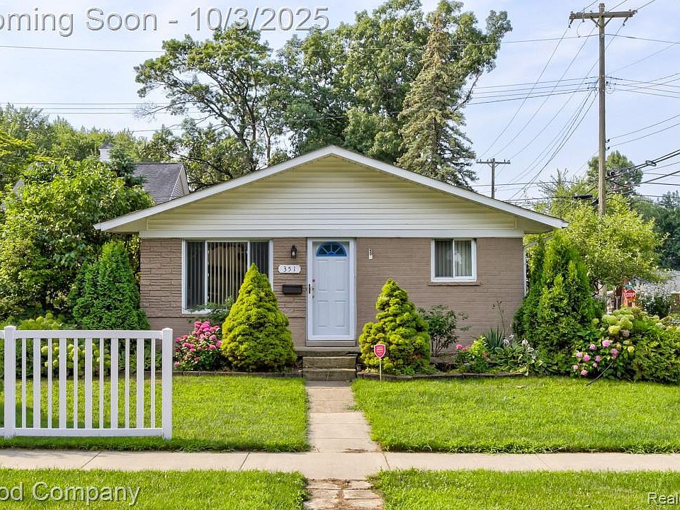 Charming brick ranch on a corner lot steps from downtown Clawson offers great indoor and outdoor space with a cozy, welcoming layout. Beautiful curb appeal greets you with a white picket fence, lush landscaping, and vibrant flowers lining the walkway. Step inside to a bright and airy living room featuring hardwood floors and a large picture window. The spacious eat-in kitchen includes tile flooring, plenty of cabinetry, updated appliances, and a new gas range and microwave. Down the hall, three comfortable bedrooms share a sleek, fully updated bathroom with stylish tile and a glass door tub/shower combo. The partially finished basement is perfect for entertaining, complete with a retro bar, gas fireplace, second kitchen, laundry area, and loads of storage. Enjoy time outdoors in the peaceful backyard with a patio area surrounded by mature greenery and a detached 1.5 car garage. Welcome Home!