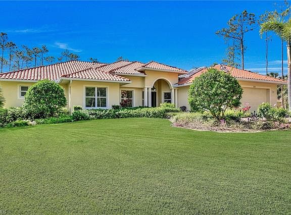This spacious estate home is located in the popular area of Weber Woods, which is just south of Vanderbilt Beach Rd and just east of Collier Blvd/951. Situated on 2.5 acres, this fully fenced and motorized gate estate features a 6 Bedroom, 4 Bath, 3916 Sq Ft main house along with a 2 Bedroom, 1 Bath, 1000 Sq Ft Guest House, both constructed in 2007. (The main house had a 1000 sq ft addition and pool constructed in 2014). Follow the winding paved drive through the trees to the private main house which features an elegant floorplan with tons of detail including double and triple tray ceilings, rich moldings, 8' doors, solid core doors, solid wood cabinets, hurricane impact windows and doors, custom salt water Pool & Spa with travertine decking, Outdoor kitchen with built in grille, whole house reverse osmosis system, whole house generator, closet built ins, and more! The guest house has similar appointments to the main house, which is great for in-laws or guests. The main house has a BRAND NEW ROOF, INSTALLED MARCH 2018!
