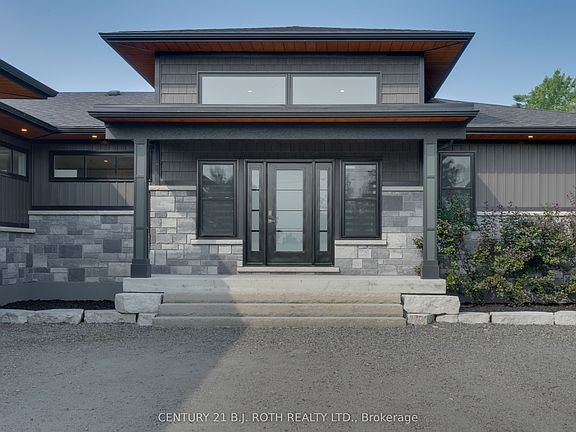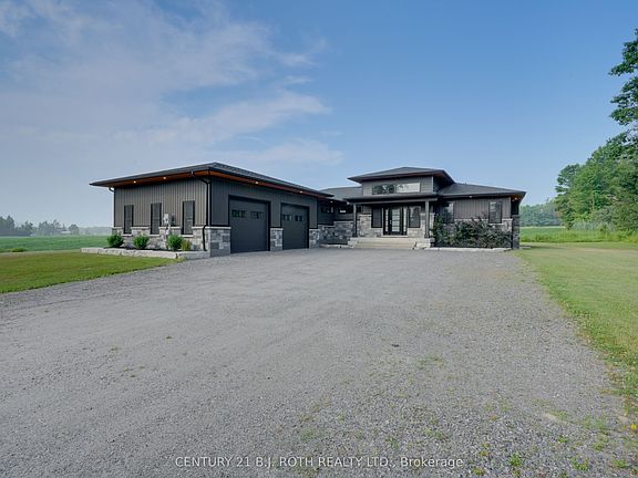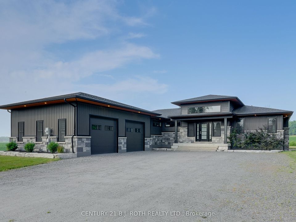A Masterpiece of Modern Elegance in a Tranquil Country Setting. Prepare to be captivated by this custom-built bungalow a residence that redefines luxury living. Meticulously crafted with premium upgrades throughout, this home offers an exquisite blend of opulence, functionality, and serene countryside charm, all just minutes from Orillia. Step inside the expansive open concept main level, where natural light floods through oversized windows, illuminating every curated detail. The heart of the home an entertainers dream kitchen features: massive quartz-topped island, full wet bar, generous walk-in pantry and Custom cabinetry with designer lighting. Flowing seamlessly from the kitchen is the great room, a dramatic space boasting 14-ft beamed and shiplap ceilings, a striking fireplace, and custom LED ambient lighting. Step through oversized glass doors to a grand stone patio, ideal for alfresco dining and sophisticated outdoor entertaining. The primary suite is your personal sanctuary, complete with: spa inspired 5-piece ensuite featuring a freestanding soaker tub, luxurious walk-in shower, and dual vanities, fully outfitted walk-in closet with custom storage solutions. Two additional generously sized bedrooms share a designer 5-piece bath, while the main floor is completed by a stylish mudroom, laundry room, and wide plank engineered hardwood flooring throughout. Descend to the fully finished ICF basement, where possibilities abound. This level offers: An additional bedroom and full bathroom, A state of the art synthetic ice hockey rink (a truly rare and extraordinary feature in a private residence), Expansive space for a home theatre, gym, or recreation lounge. The oversized, heated 3-car garage is equally impressive, fully insulated with epoxy coated floors. Set on a peaceful lot backing onto open farmland, the property offers direct access to the OFSC snowmobile trail, and is ideally situated just a short drive to local beaches, shopping, dining, and more.