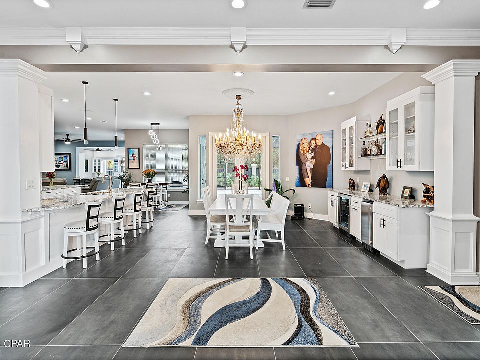 - Wet Bar, Breakfast Bar, Coffered Ceiling(s), High Ceilings, New Paint, Recessed Lighting, Split Bedrooms, Storage, Window Treatments, Instant Hot Water