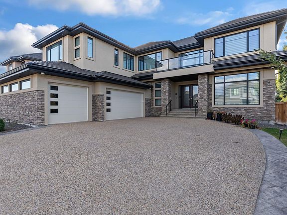 Exquisite, thoughtfully designed, and sure to impress, this custom estate offers over 6,400 sqft of living space w/ 6 bedrooms w/ 6.5 luxurious bathrooms. Stunning curb appeal accented by an aggregate driveway, stone w/ acrylic finishes, and a concrete tile roof. Soaring 19ft ceilings create beautiful open sightlines w/ an abundance of natural light that showcases the craftsmanship w/ attention to detail throughout. Prepare family meals in the gourmet kitchen w/ Wolf Sub-Zero appliances, hosting elegant dinner parties in the unique raised dining area, or getting cozy next to the striking floor-to-ceiling stone-clad fireplace. The king-sized primary retreat offers a spa-like ensuite w/ an automated rain-shower system. Enjoy movie nights in the theatre w/ tiered seating w/ popcorn counter, plus a wet bar w/ gym space. Quality upgrades include in-floor heating in the basement w/ oversized 3-car garage, Control4 Home Entertainment System, 2 central A/C units, security system, water system & energy effecient.