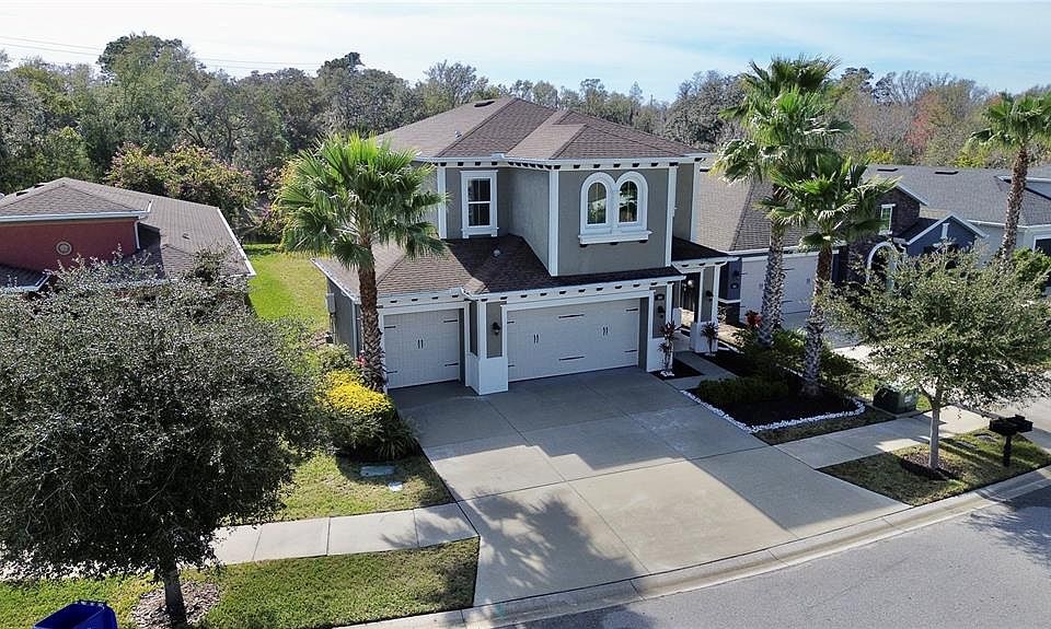 One or more photo(s) has been virtually staged. Don't miss this rare opportunity to own a CAPTIVATING 4-bedroom, 3-bathroom, 3-car garage home nestled in the prestigious gated PROMENADE AT LAKE PARK community! *** ASSUMABLE VA MORTGAGE with an INTEREST RATE of 2.625% for VA buyers only. ***This WCI masterpiece sits on a coveted CUL-DE-SAC lot, offering breathtaking views of water and trees. Step inside and be greeted by the elegance of 8' doors and wood plank tile flooring on the first floor. The main level features a guest bedroom with an ensuite full bath, alongside a spacious living area with a tray ceiling, OFFICE space, and a gourmet kitchen equipped with QUARTZ countertops, 42" cabinets, and a vent hood. Upstairs, enjoy the comfort of luxury vinyl flooring in the BONUS room and bedrooms. The owner's suite is a true retreat, boasting a large WALK-IN closet, double vanity, and tray ceiling with stunning POND views from the windows. Indulge in the UPGRADED owner's suite shower, complete with new tile, Moen fixtures, and DUAL shower heads for a spa-like experience. With the convenience of a laundry room upstairs, equipped with a washer and dryer, daily chores become effortless. This home is loaded with UPGRADES including upgraded light fixtures, gas appliances, a tankless water heater, and a water softener, ensuring comfort and efficiency throughout. Outside, the covered lanai overlooks a spacious backyard, offering ample space for a pool to create your oasis. Enjoy the perks of NO CDD fees and the privacy of a gated community. Located in a prime spot, The Promenade at Lake Park provides easy access to nearby schools, parks, shopping, and dining. With direct access to key thoroughfares and the Veteran’s Expressway, commuting is a breeze. Just 25 minutes from Tampa International Airport, this location offers the perfect blend of convenience and luxury living. Don't miss out on making this stunning home yours!