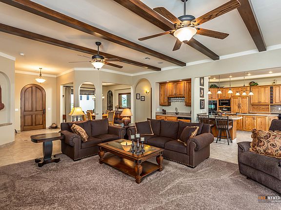 Master bath has 36'' vanities, towers, quartz countertops, separate toilet room. J&J bath between bedroom 2 & 3. Bedroom/den has murphy bed, private bath. All bedrooms have walk-in closets. Saltwater pebble tec diving pool, beach area, jets, automatic cover. Kitchen has pull-out pantry, wall double ovens, island, down draft glass cooktop, quartz countertops, under mount granite sink. Laundry room has LG broom closet, freezer, ironing center. 10' ceilings. 8' doors. 30x40x10 workshop, full bath, W/D hookup, compressed air. 24x40x13 metal building. RV hookup, dump station, no climb horse fence. Electronic driveway gate. So many extras and upgrades.