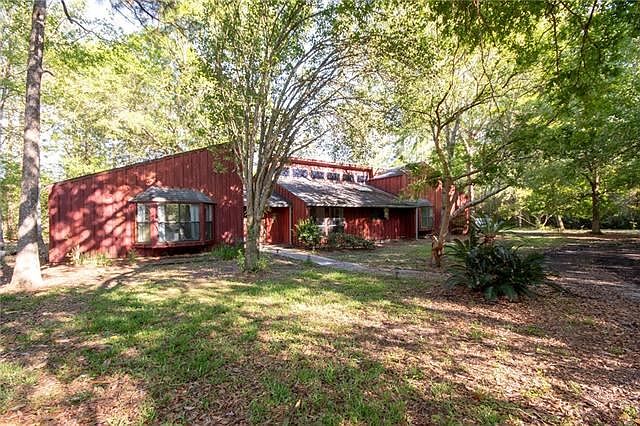 County estate tucked away on over 5 gorgeous acres moments from shopping, restaurants, and interstate. This unique home is an entertainer's delight with the 1150sf great room, stone fireplace, vaulted ceiling, and full wet bar! En-suite features claw foot tub, enormous walk in closet, and barn style door. The great room, LR and on-suite lead out to the deck and tranquil backyard. Other features include wood floors, double car garage, cypress exterior, and covered RV/boat parking. Flood ins $482. 2019-06-13