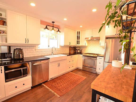 Fresh white cabinetryUpdated flooringPrivate park-like yardHot tubCampfire areaFenced vegetable garden