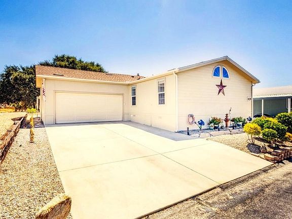LAND-OWNED! NO SPACE RENT! Stone Ridge Estates PRIVATE RETREAT surrounded by natural beauty! This immaculate home is located on a fantastic lot backed up to US Government land used as a remote naval training facility. A large covered back terrace has expansive views of mountains and southern valley. Fully landscaped front and back with drought-tolerant plants, gravel xeriscapes and flagstone pathways. From entering, the home showcases the wooded and mountain views from the spacious windows and french doors around the interior living space. The family room flows through dining and central kitchen. The home is enhanced with natural wood, stone and tile finishes, with wood-toned water-resistant laminate flooring throughout. Fixtures, faucets, surfaces have all been updated by the owners over the past 5 years. New roof added in 2023, photos in attachment. Freshly painted interior and exteriors; plus, added window exterior rolldown shades on the West and South for additional sun protection. The exterior is fire-retardant cement board. All main rooms in home have vaulted ceilings, 6-panel interior doors and insulated windows. Sunlight streams from skylights and clerestory windows. Gourmet Kitchen is fully updated with new appliances, gorgeous slab granite countertops and loads of cabinets. Master suite is large, and bath has a soaking tub and separate shower. From the full width back terrace, step into a covered outdoor living room and BBQ area adjacent to generous sized shed for storage. Back yard pathways and seating areas beckon, shaded by huge natural oak trees with space for gardening. Step out of your terraced backyard to hiking trails to nearby hills. Attached double garage and expansive front drive allow plenty of parking. Enjoy 4 season weather at 3200 feet altitude, and quiet living under star-filled skies. The Association Clubhouse offers swimming, hot-tub, billiards, library, and special events areas. In-community lakes for fishing and hiking, and public golf course is only 10 minutes away. The community is in the Warner Springs wine country, and just a short distance to Temecula shopping, restaurants, medical facilities, and theaters. View this beautiful home TODAY!