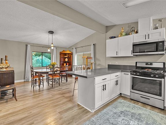 Discover your dream home in Stone Ridge Estates, beautiful & affordable, San Diego County. On one of the largest, elevated lots, this home boasts an ideal orientation, ensuring max privacy & breathtaking views. Embrace a "treehouse" feel w mature pine trees providing ample shade & refreshing breezes on summer days. Updated open-concept interior. Vaulted ceilings. New LED lighting throughout. Living room is the heart of the home, offering captivating views & cozy wood-burning fireplace, perfect for chilly evenings. New kitchen boasts generous counter space w beautiful quartz counters. Crisp white soft-close cabinets/drawers, new hardware, large pantry. Stainless steel appliances & under-mount sink w a new faucet. Flat-panel LED lighting. Views to Hot Springs Mtn. Dining room accommodates a dining table & buffet, w two large natural light windows & new 3-pendant light fixture. Vaulted ceiling in primary bedroom, walk-in closet, & new ceiling fan. Master bath includes updated quartz counter w double sink vanity, soaking tub, & a separate shower. The pretty second bedroom includes a huge closet. Quartz counters in guest bath. Office/Den/Studio is a versatile space w/ a wall-to-wall built-in desk, shelves, custom file cabinets, new fan, and custom flush lighting w programmable smart lights. The lovely laundry room offers even more storage w new cabinets and a newer washer & dryer. The highly desirable detached 2-car garage for vehicles, storage, or hobbies, adds both practical value & resale appeal. Stone Ridge Estates boasts a gorgeous clubhouse w pool tables, fireplace, dance floor, grand piano, stage, & gourmet kitchen, all available for resident celebrations. A pristine pool, spa, and BBQ area are conveniently located right outside the clubhouse. Enjoy trophy bass fishing in private ponds onsite, along w numerous hiking/ biking trails in surrounding national forest. Discover many wineries in the area, the Pacific Crest Trail, & Eagle Rock. Benefit from the peace of mind of three emergency fire & rescue stations just minutes away when needed. Sunshine Summit Market is just 2 minutes away, offering groceries & 24 hr gas. All else is just 30 min away in Temecula. 30 min south is beautiful Santa Ysabel, offering Olive & Oak Antique & Gift Shops, Dudley's Bakery, Julian Pies, Don's Market. This home is situated at an elevation of 3,300 feet, offering cooler evenings in summer, occasional light snowfalls in the winter. Come visit soon! Do not miss this beauty!