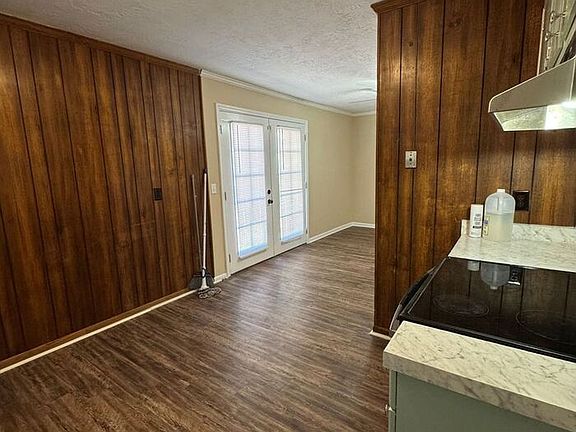 Ranch style house featuring 3 bedrooms. Living/dining room combination with French doors leading to the backyard. Kitchen features tile backsplash and stainless steel appliances. Fresh paint. Modern luxury vinyl plank flooring. Carport. Shed for additional storage. No pets please.