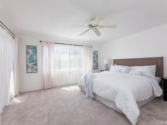 The expansive primary bedroom serves as a peaceful retreat, with ample space for large furniture and more. Step outside onto your private balcony, which offers the option to install a mini-split HVAC system, as permitted by the HOA—a wonderful spot for morning coffee or evening sunsets. The second bedroom is also generously sized, featuring a walk-in closet. Both bedrooms are fitted with ceiling fans and new carpet for added comfort.