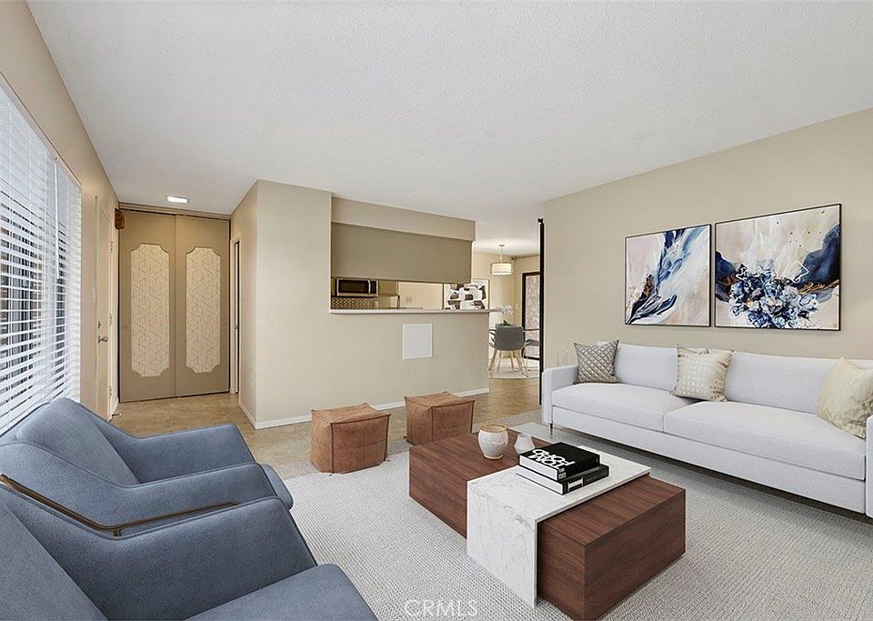 Welcome to this exceptional one-bedroom, one-bathroom condo situated on the top floor, boasting views of the Downtown Long Beach skyline and the lively port. Located in the highly sought-after Bixby Knolls neighborhood, this property offers a sensational location with close proximity to the Atlantic Entertainment District, home to a multitude of restaurants, breweries, coffee bars, and specialty shops. Inside you will be captivated by the serene living room, creating a perfect space for relaxation and unwinding. The open concept design seamlessly integrates the living room, kitchen, and dining room, providing a unified and spacious feel. The condo has been freshly carpeted and painted, exuding a modern and inviting ambiance. Natural light floods the interior, thanks to the southern exposure, making the living spaces bright and inviting. Modern light fixtures add a contemporary touch, further enhancing the aesthetic appeal of the condo. The kitchen boasts a stainless steel appliance suite, perfect for the culinary enthusiast, while abundant storage space allows for convenient organization. The condo features a contemporary barn door, adding a stylish element to the living space. The large full bathroom is crisp and clean, offering all the necessary amenities for your comfort. The expansive en-suite bedroom is a true sanctuary, filled with abundant light and featuring massive closets to accommodate your storage needs. Enjoy outside on the sunlit balcony, accessible through two sets of sliding doors - one from the dining room and the other from the bedroom. Additional amenities include on-site laundry facilities for convenience and a secured and reserved parking spot for peace of mind. The homeowner association (HOA) dues cover essential utilities such as water, sewer, trash, and maintenance, ensuring a hassle-free lifestyle. Don't miss this opportunity to embrace a modern and serene living experience in this exceptional one-bedroom top floor condo, offering a prime location and a host of desirable features. Schedule a viewing today and envision yourself living in this remarkable property!
