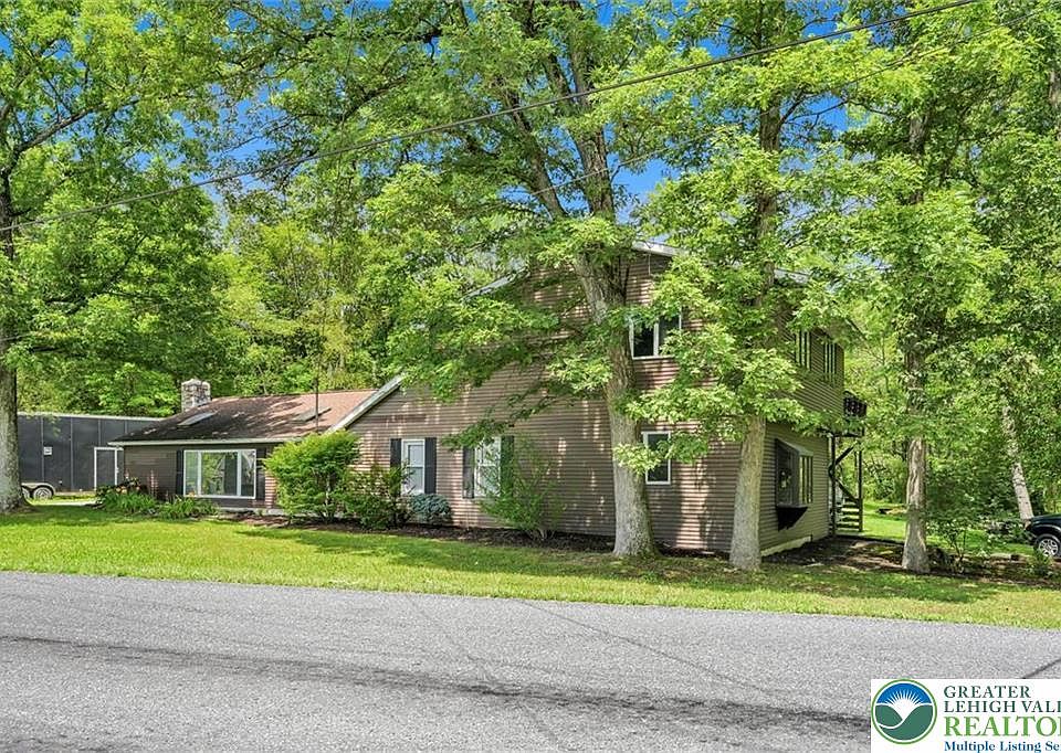 Mountain retreat! Located in a serene setting with mountain views, this property is a nature lover’s dream. Outside, enjoy just under 1 acre of mostly wooded land with a small stream running through the property. Completing the outdoor space is a large vegetable garden, koi pond, 15 x 30 metal garage, and chicken coop for your very own mini homestead. Step inside to find large windows throughout, providing the home with natural light. The warm and inviting living room features new vinyl floors, a stone-faced wood burning fireplace and skylights, offering a cozy cabin feel. The galley kitchen gives a rustic vibe paired with updated appliances, and a large eat in kitchen/ dining room. Completing the first floor are two bedrooms, full bath as well as spacious primary suite. The generously sized primary bedroom includes a bay window, large ensuite with a jetted tub, double vanity, and two large closets. Upstairs, a versatile loft area serves as an additional bedroom with a full ensuite and office — easily used as a 5th bedroom if needed. Enjoy mainly first-floor living, plus attic and basement storage for added convenience. Relax or entertain outdoors on the large deck or covered porch. With a brand-new septic system, this property is move-in ready and waiting for its next owner to enjoy peaceful country living!