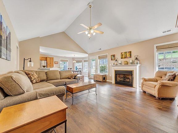 Spring is in bloom with this meticulously maintained home featuring an open floorplan that's ideal for entertaining! Upon entry you'll be drawn into the great room by the cathedral ceiling, gas-log fireplace, hardwood floors and views of the backyard that really set the peaceful easy feeling tone that's felt throughout. The owners suite has a 12' foot trey ceiling, ensuite with dual vanities and a jetted tub. There are two additional bedrooms on the main level and a separate laundry room for those looking for true one level living. As a bonus the upper level has a flex space or fourth bedroom. If all that isn't enough head out to the backyard and enjoy the covered patio, extensive landscaping and raised garden beds.