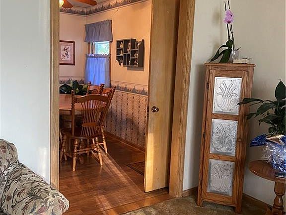 Charming One owner Ranch, shows pride of ownership. Beautiful original hardwood floors -(Under carpet in livingroom & Hall). Original Woodward thru out the home is in great shape. Updated bathroom. Wood windows with storms. Kitchen has nice stained cabinets — quality laminate wood look floors, Microwave and range stay. Metal siding - with added insulation in walls and ceiling. Quality 12 yr roof. Fenced yard . Finished room in basement (den) has closet and 2 small basement windows. 3/4 bathroom in basement. Newer garage door with opener. Attic fan. Large shade trees front and back. Truman Schools! Recroom area semi-finished. Enter basement from inside house . Dry basement but signs of settling may prevent fha loans . Basement walls were stabilized 25 yrs ago . Some settling cracks in master bedroom occurred at least 15 yrs ago but elderly owners did not repair. Seller request “as is”.