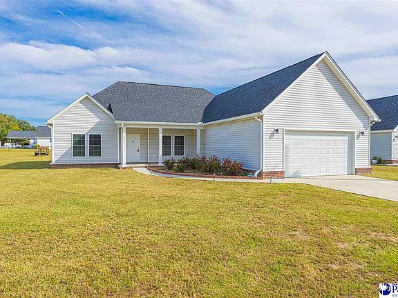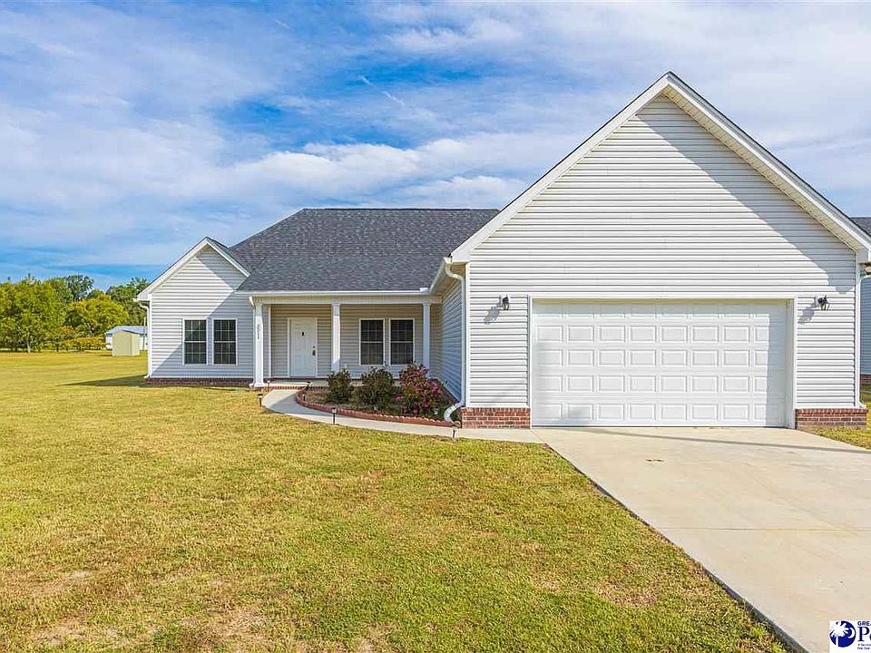 Built in 2022, this one-story home is in a cul-de-sac and boasts over 2,000 sq ft, five bedrooms, two and a half bathrooms, and a two-car garage on a 0.66-acre lot. The floor plan offers a spacious open layout with modern finishes. Upon entering the foyer, you will be welcomed by vaulted ceilings, recessed lights, crown molding, cordless blinds, and luxury vinyl plank (LVP) floors. Experience the open concept design that seamlessly connects the living room, kitchen, and dining areas, making it perfect for entertaining and everyday use. The kitchen is a true centerpiece featuring ample cabinetry, soft-close drawers, granite countertops, and a walk-in pantry. The breakfast bar island provides additional granite counter space and seating. A stainless steel electric smooth top range, microwave, and dishwasher will be conveyed. The dining room with wainscoting adjoins the kitchen, creating a cozy space for morning coffee and casual meals. The owner's suite features double tray ceilings, recessed lighting, and a huge walk-in closet. The owner's bathroom includes a linen closet, granite countertops, dual sinks with a makeup vanity, and a separate tub and shower. The four additional bedrooms include ceiling fans, cordless blinds, luxury vinyl plank (LVP) floors, and 6-panel doors. The hallway full bath features dual granite sinks and a tub/shower combo. The laundry room doubles as a mudroom and is conveniently located near the garage door. The exterior includes gutters, a front covered porch, and a rear patio. The property has well water, a septic tank, and is not in a Homeowners Association (HOA). Come envision spending your days inside and outside this 2022 construction home!