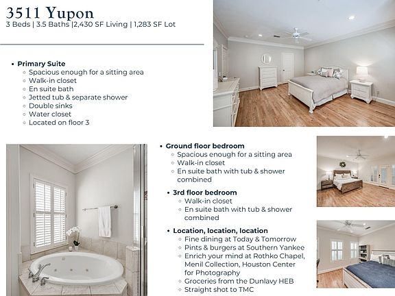 - Exterior features: 0 Up To 1/4 Acre, 1 Bedroom Down - Not Primary BR, 1 Living Area, Architecture Style: Traditional, Attached, Balcony, Crown Molding, Driveway, En-Suite Bath, Flooring: Wood, Full Size, Garage Door Opener, Gas Log, Heating: Gas, High Ceilings, Living Area - 2nd Floor, Living/Dining Combo, Patio Lot, Prewired for Alarm System, Primary Bed - 3rd Floor, Sprinkler System, Utility Room, View Type: West, Walk-In Closet(s), Window Coverings, Wired for Sound
