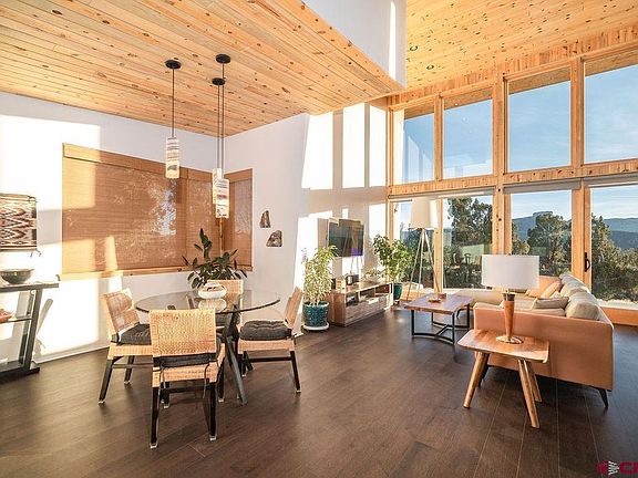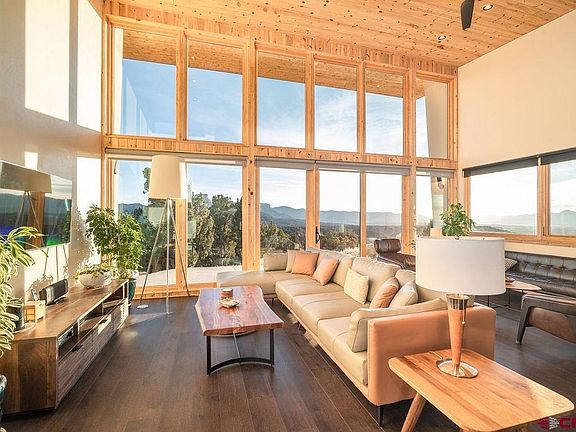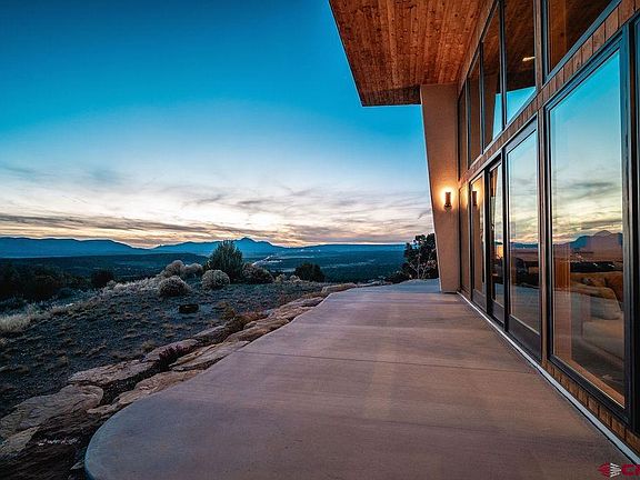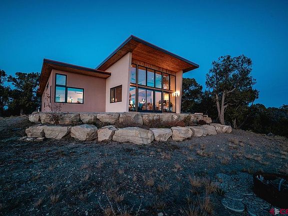 Step into pure magic at this 2 bedroom custom home on 10 secluded acres overlooking Mesa Verde National Park! Inspired by the dramatic setting, this modern design by Matt Clark of Clark and Chapin Architects is a true stunner! Flooded with natural light, this passive solar gem features engineered hickory floors, vaulted blue pine ceilings and 14' windows that provide astounding views of Mesa Verde National Park, Sleeping Ute Mountain and the Montezuma Valley. The open living, dining, and kitchen areas create a relaxing and spacious interior. The kitchen is sensational! A perfect balance of space and function with center island, bar seating, quartz countertops and Decor custom cabinetry. Features include Sub Zero Refrigerator/Freezer, Bosch Induction Cooktop, Miele Range Hood , Asko Dishwasher and GE Wall Oven. Elegant Onyx pendant lights and under cabinet lighting accent the atmosphere around the kitchen and nearby breakfast nook. Enjoy the expansive views from the roomy and relaxing living space with built-in JBL speakers and an easy step out thru the sliding glass door onto the patio. The large primary bedroom is private with a walk-in closet and private en suite bath. The primary bath has it all - double vanity with quartz countertops and fog free mirrors made comfortable with in floor heated porcelain tile, free standing tub, and shower with luxury shower panel. The 2nd bedroom is also large with easy access to the 2nd bathroom with shower, quartz countertop vanity and lighted fog free mirror. The beautiful multi textured exterior has two toned stucco, blue pine accent walls and edgestone rock blending perfectly with the high desert landscape. With durability in mind - the heavy gauged raised panel roofing has S-5 snow guards and is built to withstand Colorado winters. Beautifully landscaped, the drought tolerant shrubs and perennials are low maintenance and match the setting and home design perfectly. Being outside the home on the land is to further enjoy the wooded surroundings, privacy and mountain views. There’s even a perfectly positioned bonfire pit overlooking the expansive valley and surrounding mountains. Great location just minutes to Cortez, Mancos, and Durango. This property is made for making memories and experiencing all the best of southwest Colorado!