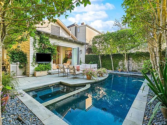 This one is a beauty, inside and out! With all the charm you hope for in an Uptown home… a gracious front porch, 12 foot ceilings, gleaming hardwood floors, oversized windows with abundant natural light, and a working gas fireplace. And aLos all the modern luxuries you need… premium appliances, stone countertops, custom cabinets and built-ins, open kitchen, and an oversized primary suite with a charming sitting area. Outside, enjoy your own private oasis: your sparkling saltwater pool with hot tub, a convenient grill area, a refreshing outdoor shower, plus a stunning poolside patio perfect for entertaining, watching the game, or just relaxing! And so much is NEW … new panoramic glass doors that open from the sitting area to the pool, new siding across the back of the house, new Bevolo gas lanterns, new HVAC and ductwork, new washer/dryer, new pool heater and lighting, new landscaping and landscape lighting, and so much more! Just steps from all your favorite restaurants, shops, and entertainment on Magazine St, but on a wide and quiet street with your own off-street parking, this jewel box is a must-see!