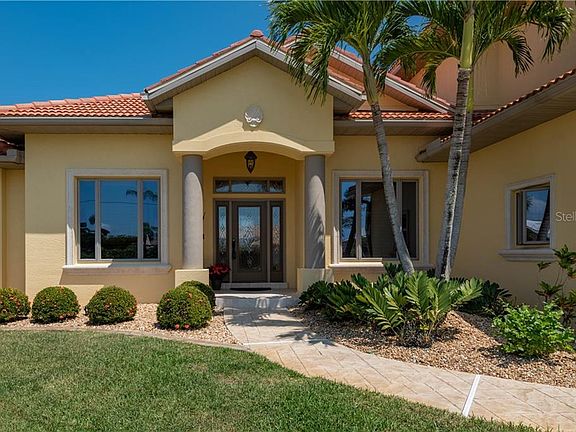 PUNTA GORDA ISLES! GORGEOUS WATERFRONT POOL HOME WITH SAILBOAT ACCESS TO CHARLOTTE HARBOR LEADING TO THE GULF OF MEXICO! Quick access via new Buckley's Pass. 73' of water frontage with concrete seawall, dock and 28,000 lb. boat lift. Inviting open floor plan features elegant entry with sidelights and transom window, 3 bedrooms + den/office, 2 full baths, 2 half baths with many designer details including soaring ceilings, arched built-ins, marble flooring, plantation shutters, French doors and beautiful fireplace in living room. Oversized gourmet kitchen features cherry wood cabinetry, granite counters and backsplash, built-in oven, island, breakfast bar, casual dining area with aquarium window to enjoy the water views plus family room. First floor master suite features access to lanai and private bath with dual sinks, garden tub and roman shower. The 2nd floor features two large bedrooms with walk-in closets and separate guest bath. Outdoor entertaining area features covered lanai, half bath, outdoor shower and new screened heated saltwater pool and spa overlooking amazing water views. Meticulously maintained with lush tropical landscaping for great curb appeal. Premier golf and boating community close to Yacht Club, Fishermen's Village, Punta Gorda's historic downtown featuring restaurants, shopping, community events and entertainment! Don't miss this opportunity! Call for your private showing today!
