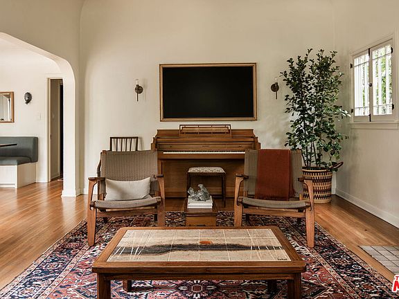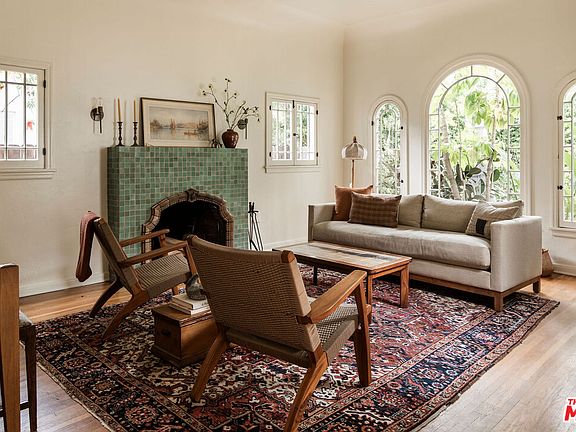 Masterfully reimagined, this 1926 Spanish-style sanctuary effortlessly blends timeless architecture with modern luxury. The 3-bedroom, 2-bathroom main residence is complemented by a detached guest house, creating a private compound. Beyond the hedged and gated entrance, a lushly landscaped yard and tiled patio welcome you into the home's warm, character-rich interiors. Inside, the living room showcases original barreled ceilings and a striking fireplace adorned with Raku fire-glazed tile that beautifully coincides with the home's original detailing. Sunlight filters through restored wood-framed windows, adding warmth and vibrancy throughout. The kitchen is a dream, featuring high-end appliances, custom cabinetry, and designer finishes that honor the home's heritage while meeting modern-day expectations. French doors from the dining area open seamlessly to the front patio, making indoor-outdoor entertaining a breeze. The primary suite is a tranquil escape with direct access to the backyard oasis where a sparkling pool and spa, built-in fire pit lounge, and mature landscaping provide privacy and relaxation. The detached guest house includes its own bathroom and offers flexible space for guests, a home office, or a creative studio. Situated on a generous lot in the heart of Atwater Village, this rare offering is just minutes from the cafes, boutiques, and weekly farmers market.