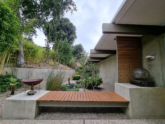 Located just off Mulholland Drive in the Hollywood Hills with convenient access to West Hollywood and Studio City. Fully furnished and ready to move in. This home is a classic open floor plan, post and beam design by mid-century modern masters Buff&Hensman, and has been thoughfully updated, furnished, decorated, and maintained over the years. This house has floor to ceiling windows with skyline views of the mountains and valley, beautiful furniture, fittings, and original artwork, premium amenities, and privacy. In the main house, the master suite has king-sized bed, walk-in closet, ensuite with separate shower and bathtub. The second bedroom has queen-sized bed and built-in closet and desk. There is a third room set up as an office with built-in desk, shelves, and drawers. The kitchen is fully equipped with Viking and Subzero appliances. There is a gas grill at one end of the balcony, and a hot-tub at the other side. The pool and pool house is located down a scenic pathway with canyon views. In the pool house is a convertible sofa bed, shower and steam room. The property is gated and has two covered parking spaces . There is off-street parking for up to six additional cars. Lease duration is flexible. Minimum three months, up to one year. No smoking indoors. Pets are not permitted. AT&T fiber internet is included.