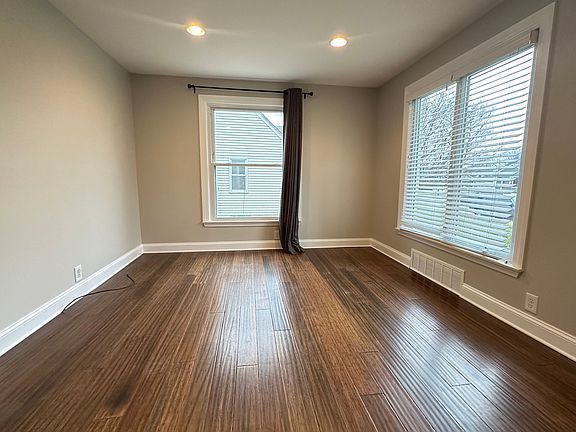 3 bed, one full bath with newer kitchen with granite counters, white shaker cabinets and stainless appliances. Updated, bathroom, light and bright. Bamboo flooring in the living room and kitchen. Freshly painted throughout. Partially finished basement adds nice extra living space. 2.5 car garage and large yard. 700+ Credit score and income of 80k+ required. Immediate occupancy. Tenant pays all utilities. 2 year minimum lease preferred.