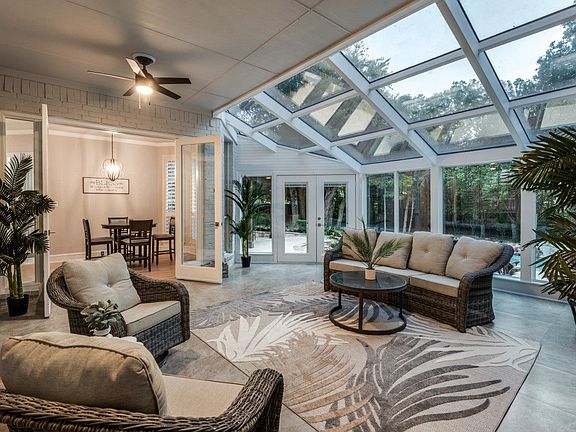Nestled on a spacious corner lot, this beautifully updated luxurious home has a living design with comfort and functionality. From the moment you walk in, you'll notice the attention to detail, rich wood flooring flows throughout entire home, solid 8' interior doors, complemented by extensive custom molding and plantation shutters for a timeless feel. The open concept kitchen in a chef's delight with upgraded self closing cabinetry featuring pull out shelving, quartz countertops, a second wall of pantry shelving, and high end lighting that makes the space both practical and stylish. The primary suite is a private retreat with a spa like shower and designer finishes for a calming escape. Step outside to enjoy a resort style backyard complete with an oversized pool and spa, an outdoor kitchen, bar, tv, fire pit, a basketball court, and room to play all while backing up to a tree line slice of peaceful retreat. 3 car garage adds convenience, and the homes layout is ideal for both daily living and hosting. Approx. $300K of upgrades and list of upgrades available on request and on transaction portal.