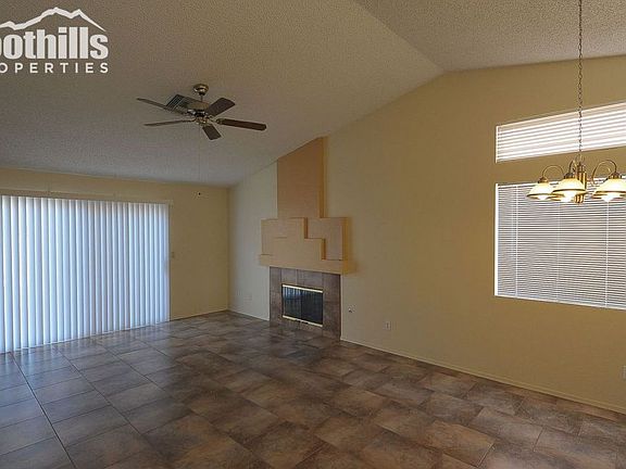 This home has it all 3 bedroom, 2 bath, High ceilings, W/D, Refrigerator, microwave, Gas fireplace, ALL ROOMS CERAMIC TILE throughout, 2 car garage, large back yard backs up to common area desert,trees etc. Tile roof. Community pool, spa, tennis courts, jogging path, large park in th3e community. No street parking Ask about Property #2937