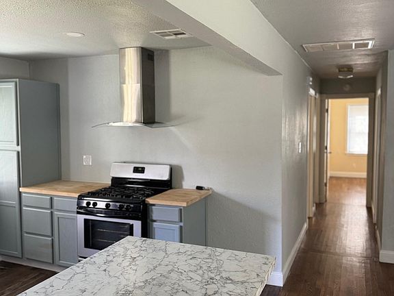 Vanity with drawersRemodeled open concept homeGood-sized bedroomsRemodeled bathroomGas stoveNew roofLower water usage toilet