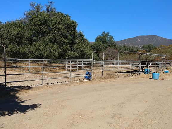 Beautiful 10 acres with over 350 live oak trees. Private and fenced. 2.5 miles back on a dirt road. Home is a fixer upper. Property has a private shooting range. Perfect for the grower or horseman. Miles of trails for riding. Property has 2 wells, 40' storage containers, 20' storage container, outbuildings, pipe corral, 36 x 60 covered area. Comes with an above ground pool and spa. Home is all electric and on a co op through Anza Electric. Must really see to appreciate. No owner financing available. Serious inquiries only. 15 miles from Hemet, 21 miles from Temecula
