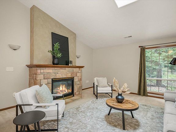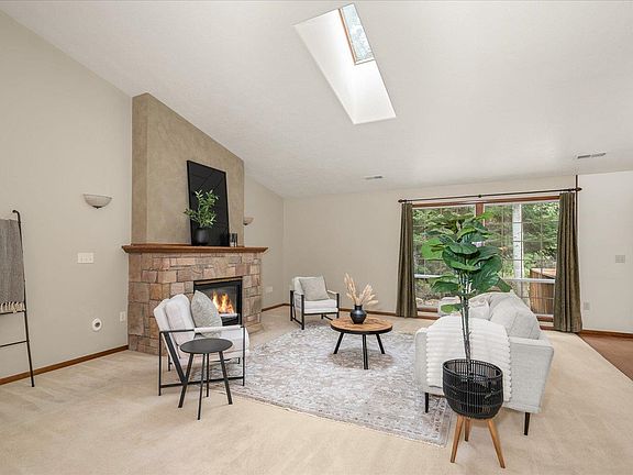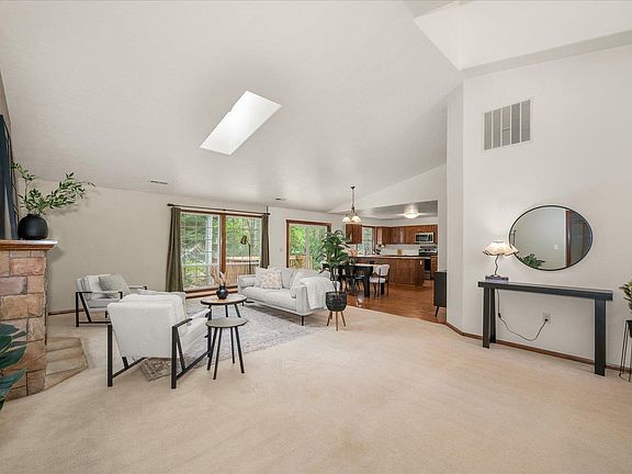 Discover this beautiful 4 bed, 2 bath single-level home in the gated Bear Creek Crossing community, nestled on 5.54 wooded acres with a peaceful creek running through. The open layout features cathedral ceilings with dormers and skylights, filling the home with natural light, while large windows frame serene forest views. The spacious primary suite offers a walk-in closet and soaking tub. A versatile 4th bedroom with its own walk-in closet can serve as an office, den, or guest space. A large pantry provides extra storage, and RV parking adds convenience. Recent upgrades include a new well pump, AC unit, and water heater, making this home move-in ready. Residents enjoy private access to Bailey Lake for fishing, kayaking, and paddleboarding—offering the perfect blend of privacy, nature, and comfort.