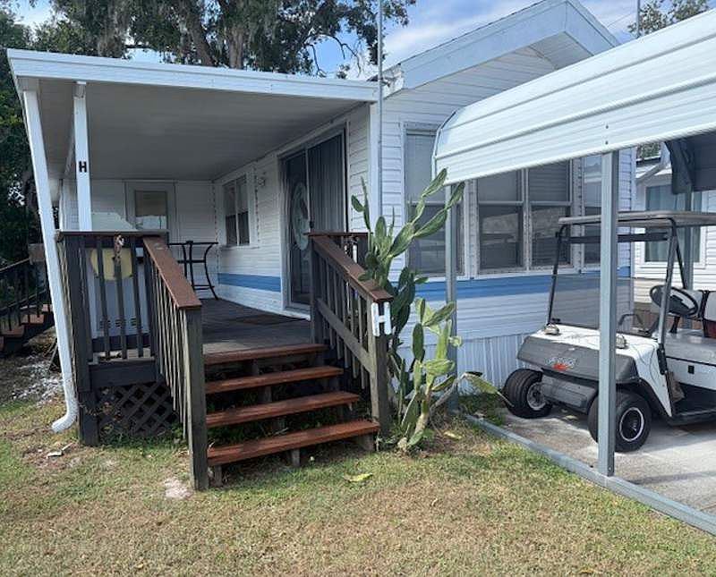 Adorable 2 Bedroom/1 Bath Park Model - Fully furnished and Golf Cart Included:Step into this charming turnkey home nestled in a 55 and older park, offering everything you need for relaxed, resort-style living. Two comfortable bedrooms and one full bath make this perfect as a full-time residence, or a seasonal escape.Inside you'll find all furniture included, so you can move right in hassle-free. A fun bonus, the golf cart is included, giving you easy mobility around the grounds and amenities.Outside, enjoy the beautiful open deck with a roof overhead - ideal for dining, lounging, entertaining or simply enjoying the fresh air, rain or shine. Plus there is a nice shed in the back, offering extra storage for your gear.This home ticks all the boxes, turnkey furnished, fun and functional. Contact us today to schedule a tour -- you won't want to miss this one!