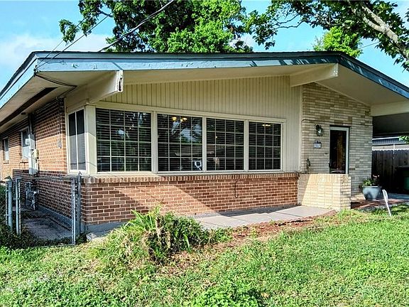 Mid Century style home in high demand area of Metairie, near Rummel. Home sits just off of beautiful tree lined Severn, where the St. Patrick's Day Parade has been lining up. This home needs TLC and has deferred maintenance, but is livable. The living room has great wrap around windows in one corner and a vaulted ceiling. The "DEN" could be used as an office or as a larger dining area, etc. The primary bedroom has a sliding door that opens onto a covered patio. The home also has a storage area and a carport. Flood zone X. There are many popular schools in the area. Priced to sell!