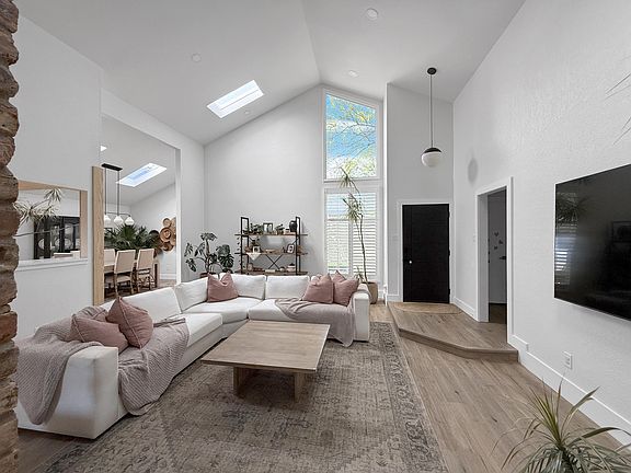 Step into this beautifully updated 3-bedroom, 2-bathroom, 2-car garage home, nestled in an established neighborhood with mature trees and landscaping. Boasting a sunroom, POOL, and workshop; this residence offers an exceptional living experience. The backyard is a private oasis, perfect for relaxation and entertaining. A beautiful wrought iron fence surrounds the in-ground gunite pool, separating it from the lush grassy lawn. A 7-foot privacy fence encloses the entire backyard, creating an intimate setting where no expense was spared in its design. Inside, multiple skylights, current paint colors, and soaring ceilings create a bright, airy, and welcoming atmosphere. A grand double-sided brick fireplace provides ambiance and warmth to both the living room and the cozy sunroom. The wonderfully updated kitchen with stunning quartz counters seamlessly flows into a lovely breakfast nook with large bay windows overlooking the pool. A separate dining room offers an ideal space for hosting family and friends. The isolated master suite features a nook for a desk and a dream bathroom with a soaking tub and a separate shower. Two additional spacious bedrooms share an updated hall bath, located on the opposite side of the house from the primary bedroom for privacy. Don't miss the charming nook near the sunroom; perfect for a home office. Additional features include plantation shutters throughout and two A/C units for optimal comfort. You don't want to miss seeing this warm and inviting home with features that make it a one of a kind opportunity.