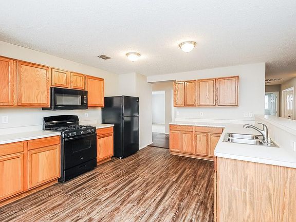Incredible two-story home is ready for you and your family! Stunning foyer with vaulted ceilings and gorgeous natural light, open concept floor plan, and FIVE large bedrooms. Open kitchen with black appliances and nice vinyl wood flooring, gas starter fireplace in one of the three living rooms and amazing backyard with covered porch perfect for entertaining guests. The master suite features a spacious bathroom with dual sinks, garden tub and separate shower. Wait until you see this home!