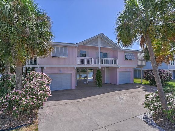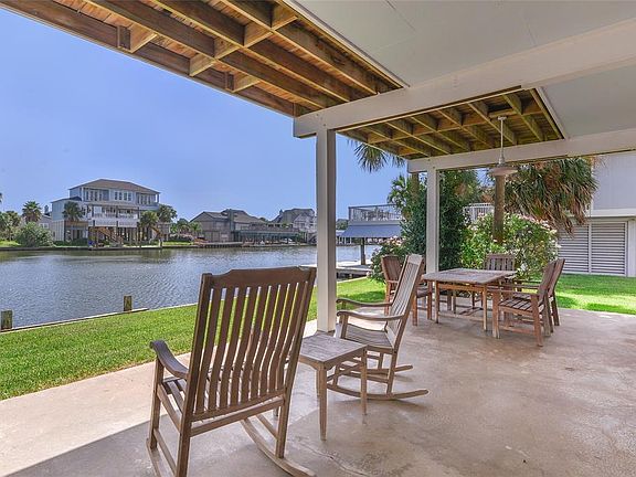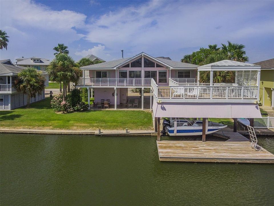 Sought after 4 bedroom home on largest canal in Pirates Cove. Located near Galveston Country Club this well maintained home has never been a rental. Mature, well established, low maintenance landscaping offers Oleanders, Palms & Confederate Jasmine. Total remodel, specifically designed for low maintenance, completed in 2007. Kitchen features top of line Bosch dishwasher, Jenn-Air range/oven, GE Monogram microwave and KitchenAid Superba refrigerator with panels to match bead board cabinet fronts. Both bathrooms feature jetted tubs with Hansgrohe Raindance Showers. Custom cabinetry in bedroom closets with chest & TV alcove. Nest thermostat, Track lighting in dining area, ceiling fans in living room and bedrooms, fireplace with slate mantel. 2009 roof. Dumbwaiter & 2 extra large garages both with automatic doors, ceiling fans & work benches. Over 1,000 square feet of North & South decking. Move in ready, decorated and furnished to include Boat & Sailboat - details provided upon request.