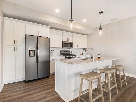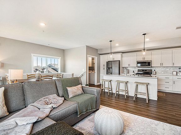 Welcome home to this like-new, beautifully maintained condominium in the highly sought-after Rivertown Park community! This 2 bedroom, 2 bathroom upper-level unit offers a modern, open-concept layout featuring a stylish kitchen with a center island, quartz countertops, a sleek tile backsplash, and a premium slate kitchen appliance package. Luxury vinyl plank flooring flows seamlessly throughout the kitchen, living room, guest bath and laundry area, adding both durability and elegance. The spacious primary suite is a true retreat, boasting a spacious walk-in closet, a private bathroom with double vanity sinks and quartz countertops. Custom window treatments provide both style and privacy throughout the home. Step outside onto your private deck, perfect for relaxing. Additional conveniences include an attached single-car garage with extra storage space, plus a separate deeded storage closet for all your extras.