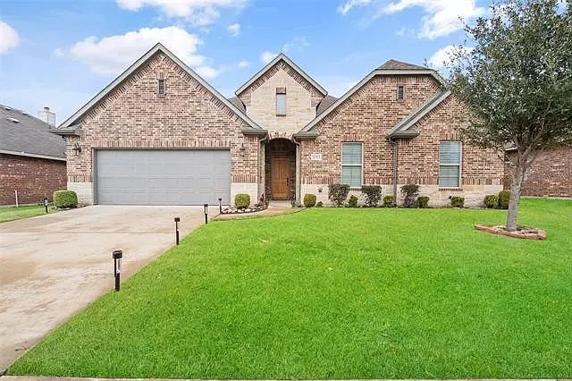 Nestled less than a 15 mile drive from the vibrant heart of Downtown Dallas, this custom-built brick and stone home offers a luxurious living experience with its open concept layout and high ceilings. The interior is designed to impress, featuring wide hallways that flow into a spacious living area where a wood-burning stone fireplace creates a warm, inviting atmosphere. The home is equipped with pre-wired surround sound in the living room, perfect for entertainment enthusiasts.