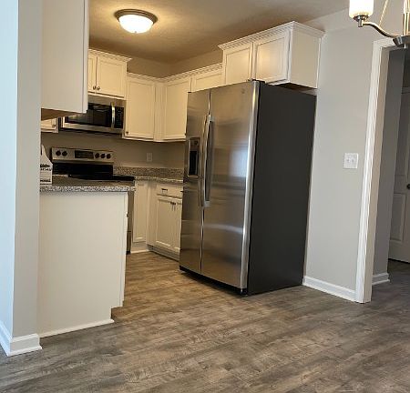 Black shuttersDesigner finishesWhite painted brick exteriorsOpen floor planGranite countertops in kitchenWasher and dryerWhite painted kitchen cabinets