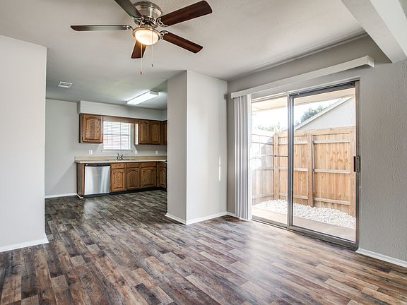 Gas fireplaceWood like vinyl floorsSmall side patioQuiet cul-de-sacCovered car portFenced in yard