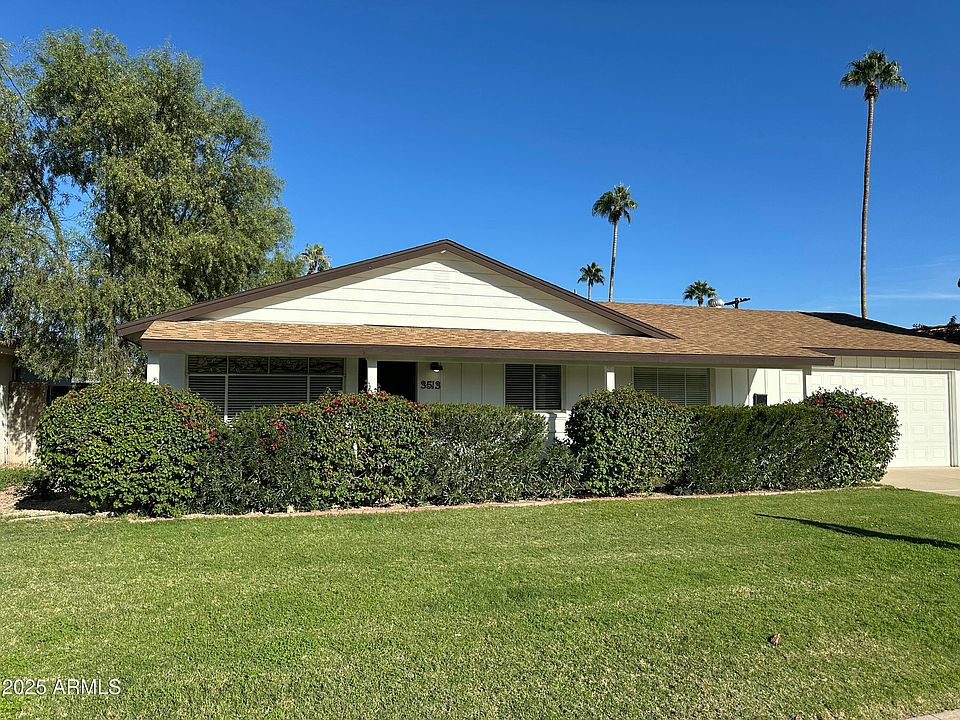 VIEW OF CAMELBACK MTN FROM FRONT YARD OF THIS 3 BEDRM/1.75 BATH HOME. APPROX 1411 SQ FT. FEATURES INCLUDE: PARQUET FLOORING IN FAMILY ROOM, KITCHEN & HALLWAY, LIGHT OAK KITCHEN CABINETS WITH SOME PULL OUT SHELVES. NEUTRAL CARPET,'LEADED' GLASS AT LIVING RM WINDOW, MIRRORED CLOSET DOORS IN BEDROOM 3, TILE FLOORS IN BOTH BATHS. GREAT LOCATION AND READY TO RENT!