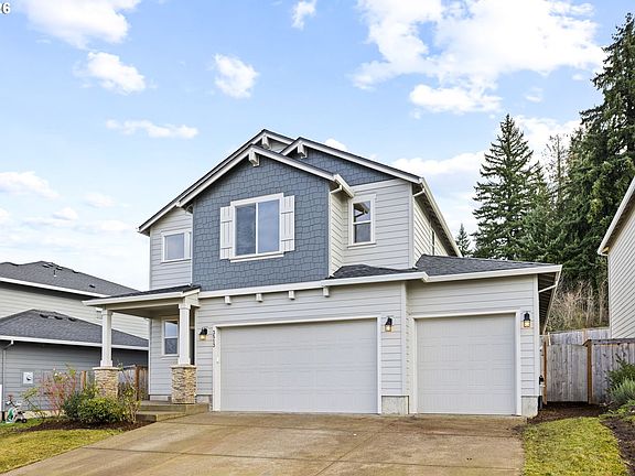 Welcome to this like-new, two-story home nestled on a quiet street in a beautiful, brand-new Estacada community. Offering 2,452 square feet of thoughtfully designed living space, this 4-bedroom, 3-FULL bathroom residence showcases modern luxury finishes and exceptional functionality throughout. The open and airy floor plan is ideal for both everyday living and entertaining, featuring high-quality materials, clean modern lines, and abundant natural light. The chef-inspired kitchen serves as the heart of the home with sleek cabinetry, premium surfaces, oversized island and contemporary fixtures, flowing seamlessly into the primary living area. A main-level bedroom and full bath provide flexibility for guests, a home office, or multigenerational living. Upstairs, an expansive loft bonus room allows for versatile and dynamic space. The spacious primary suite offers a spa-like bathroom and generous closet space, along with additional well-appointed bedrooms and baths. Every detail reflects the home’s nearly new condition and modern design aesthetic. Step outside to enjoy a large backyard with room to relax, play, or garden, complemented by a covered patio—perfect for year-round outdoor entertaining. A rare 3-car garage adds ample space for vehicles, storage, or hobbies. The Owned-SolarPanels elevate this home's Green Footprint, while keeping monthly utility costs at an all-time low! Located in a peaceful, newly developed neighborhood, this home delivers the ideal blend of privacy, style, and convenience—just minutes from Estacada’s outdoor recreation, shops, and dining.