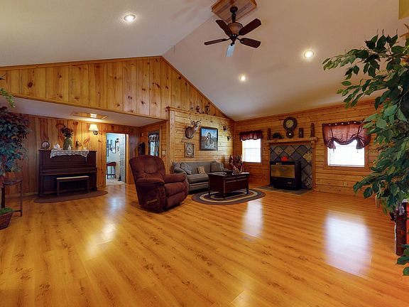 This LOG home offers lots of space. Beautiful wood work throughout home, Split floor plan, master has it's own private suite with large walk-in closet. Loft bedroom has it's own 1/2 bath. Great country kitchen opens to a large den. Front and side porch, perfect for lazy afternoons. New 40X42 insulated shop has commercial, insulated door. Shop is large enough for Rv to be inside. separate outbuilding for storage with parking storage. See associated documents for details.