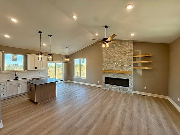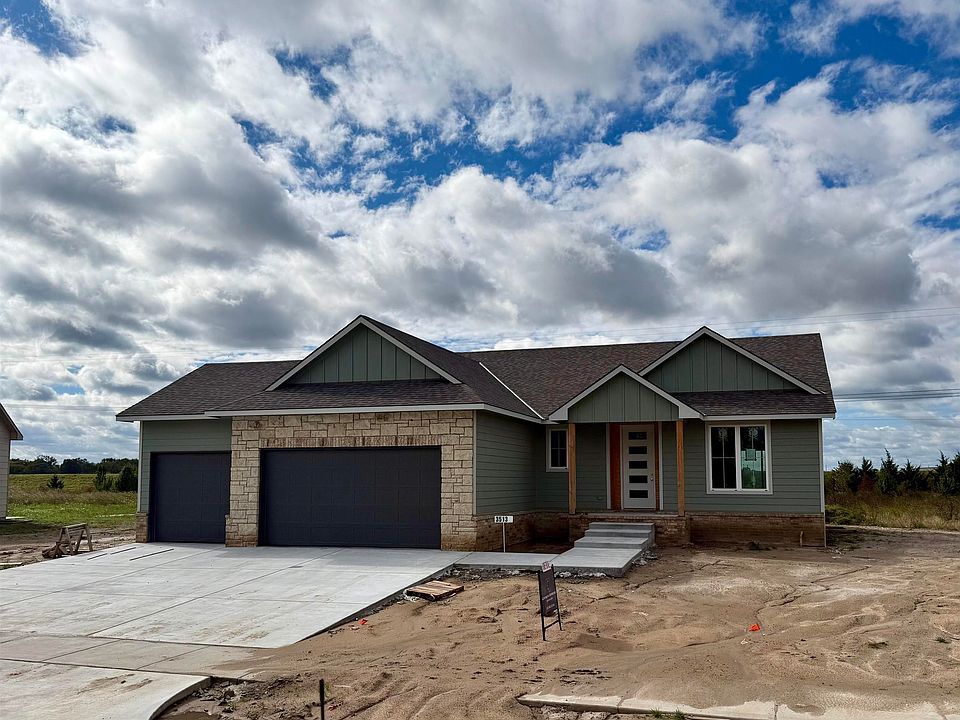 Home is in the Final stages with an estimated completion date of 11-30-25 Lake community in the heart of Wichita?! Yes!! This stunning custom offers 3-bedroom, 2 full bath and a 3-car garage with 12' ceilings for the car enthusiast with lifts or space driven homeowners. Vaulted ceilings in the living room with stone wall and built in 6' linier fireplace. Natural woods for mantle and floating shelves. High end luxury vinyl flooring throughout main level. All wood constructed cabinets with crown molding, granite island and quartz tops on surround with under mount composite sink. Fitted with stainless GE gas range, microwave and dishwasher. Main floor laundry and mud room. Master bedroom features massive his and hers walk in closets with makeup or dresser wall niche. Tray ceiling with ceiling fan and wired wall for tv mount. Granite tops with marble floor and custom walk-in shower paired with his and her sinks. You have 2 more main floor bedrooms with one that features a built-in dresser and the other having a walk-in closet. Main floor bathroom is very spacious with marble flooring and granite top. The basement is fitted with a full bathroom already has plumbing, electrical and tub/shower. This entire basement has HVAC, electrical, plumbing and wet bar. All very ready and easy to finish the basement and have a massive family room, 2 more bedrooms and a full bath with a full entertainment wall prewired and full wet bar. The home has a massive backyard with a covered patio ready for your relaxing sunset views and entertaining. This is your chance to get in this beautiful new build and settle in just in time for bringing in the new year! Seller is licensed REALTOR in the state of Kansas