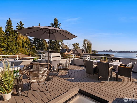Located 1 block from the lake and everything Leschi has to offer, this single-family, detached view home perfectly captures the essence of Leschi living, w/ stunning views from nearly every room and level. Natural light floods the spacious interior, where each floor opens to breathtaking vistas, whether you're relaxing in the living room or enjoying morning coffee from the expansive rooftop w/ panoramic views stretching from Bellevue to the Cascades. The open-concept living spaces feature an updated kitchen, dining area and a statement fireplace. The primary suite is a private retreat w/ a sitting area, walk-in closet and 5-piece ensuite bath. Central AC, a large laundry room, 2 car garage & bonus storage complete this one-of-a-kind home.