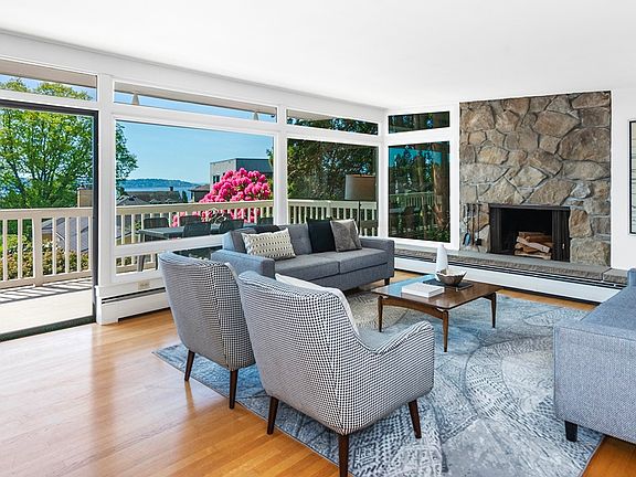 Unleash your creative vision and transform this mid-century home into a stunning masterpiece in one of Seattle's most sought-after neighborhoods. This property presents an exciting opportunity for those with a passion for mid-century design. The large windows capture a Sound and Mt. Rainier view and the surrounding greenery, providing inspiration for a harmonious indoor-outdoor connection. Three outdoor living areas offer spaces to enjoy the beautiful PNW summer. A 2nd kitchen on the lower level creates a well-appointed entertainment haven or perhaps an ADU. The bedrooms are a blank canvas with ample closets. Enjoy the convenience of parking in the 2-car garage with alley access. Excellent proximity to “The Village” and Discovery Park.