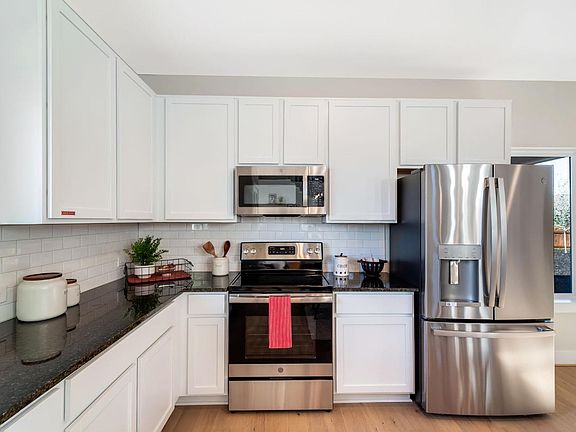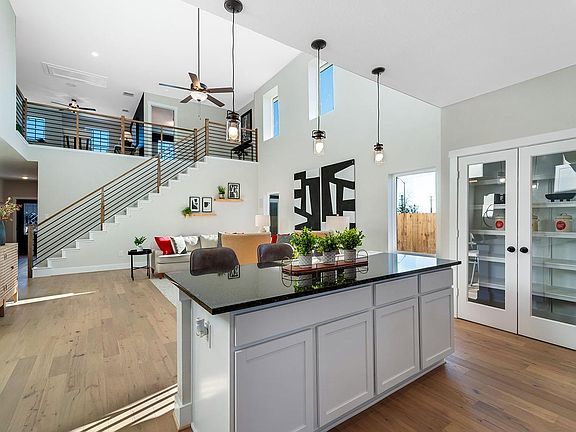 Welcome to this stunning model home in the sought-after Cloud Country community of New Braunfels. This thoughtfully designed two-story home showcases designer finishes, a spacious open floor plan, and countless upgrades throughout. The main level features high ceilings and abundant natural light, creating a warm and inviting atmosphere. The gourmet kitchen is a showstopper—complete with upgraded stainless steel appliances, sleek countertops, custom cabinetry, a large center island with pendant lighting, and a breakfast bar that opens to the dining area and living room—perfect for both entertaining and everyday living. The primary suite on the main floor offers a relaxing retreat with a custom accent wall, a luxurious en suite bathroom featuring dual vanities, a garden tub, a separate walk-in shower, and a large walk-in closet. A dedicated office off the entry provides the ideal space for remote work or study. Upstairs, enjoy a secondary living area that offers flexibility for a game room, media space, or playroom, along with three additional spacious bedrooms and two full bathrooms. Step outside to the fenced backyard with a covered patio, ideal for outdoor dining or weekend relaxation. Residents of Cloud Country enjoy access to amenities including walking and biking trails, a community pool, clubhouse, and BBQ areas. The location is unbeatable—just minutes from Historic Gruene, shopping, live music, restaurants, and the best recreational activities that New Braunfels has to offer.
