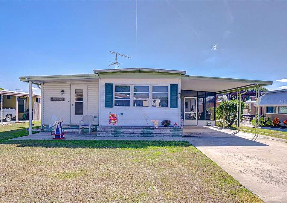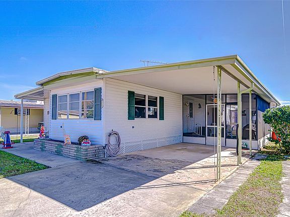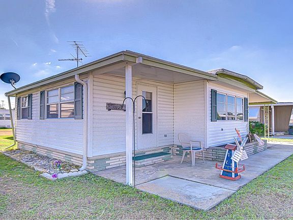 Located in the vibrant 55+ community of Zephyr Shores, this charming single-wide mobile home offers comfort, convenience, and an active lifestyle. The home sits on its own lot and welcomes you through a spacious 10’x 17’ Florida room, a bright and inviting addition that provides plenty of extra living space. From here, step into the open dining area, which also includes a cozy sitting nook perfect for relaxing or entertaining. The remodeled kitchen features an island, updated finishes, and comes fully equipped with all appliances. Down the hallway are the two bedrooms and a bathroom with a walk-in shower for easy access. Outside, you’ll find even more to enjoy: a large 11’ x 18’ screened porch, perfect for morning coffee or evening breezes. The side shed houses the washer and dryer for added convenience. The home also includes a carport and driveway, vinyl siding, and downspouts. Plus it’s fully furnished and move-in ready. Zephyr Shores is an active 55+ park offering a clubhouse, pool, shuffleboard, bingo, and evenings filled with music and group activities. This home is waiting for you to start enjoying the Florida lifestyle!