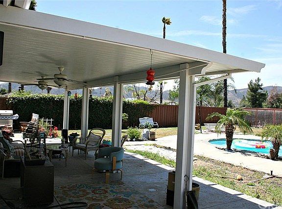 Beautiful mountain views and gorgeous sunsets make this pool home with 3 bedrooms & 2 bathrooms located on a .25 acre lot a rare find..... No HOA & low taxes. Huge newer alumawood style patio cover in back yard with ceiling fans and adorable kid's playhouse. Energy saving newer pool pump installed last year. Tile floors & wood laminate floors throughout. Huge yard and side yard - tons of room for storage - possible RV access or boat parking on side. Exterior was painted a few months ago. Owner installed french doors out to back yard. Owner has done a lot of upgrades on this home. Bathrooms just renovated.