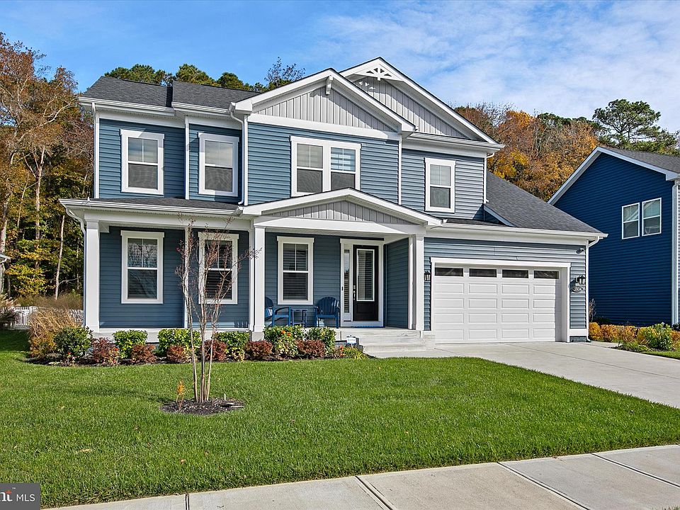 Welcome to 35134 Water Lily Court, a beautifully maintained and tastefully furnished home in the prestigious community of The Estuary in Frankford, Delaware. This two-year-old residence is being sold furnished with minor exclusions offering the perfect blend of comfort, style, and convenience. Situated on a premium lot with a tree-lined backyard and generous space between neighbors, the setting provides a sense of privacy and tranquility that’s hard to find. Inside, thoughtful design upgrades and custom touches elevate every room. Ship lap accent walls add warmth and coastal charm in the office, powder room, front hallway, primary bathroom, loft, upstairs hallways, and bedrooms. The stairway has been enhanced with elegant wrought iron balusters. Throughout the home, Silhouette blinds filter the light beautifully while offering privacy, and builder-grade mirrors have been replaced with upgraded framed designs for a polished, refined look. The kitchen is a showpiece, designed for both everyday living and entertaining. It features double wall ovens, a five-burner gas cooktop, and white trimmed, soft-close cabinetry topped with elegant crown molding. The expansive island comfortably seats six, perfect for casual meals or gathering with friends. A classic glass subway tile backsplash and pantry for storage complete this bright and functional culinary space. The adjacent dining area provides easy access to the screened porch with a gas burning fireplace. The living room is a true centerpiece, reimagined with a custom electric fireplace surrounded by white quartz stone veneer, floating tempered glass shelves with glass-tile backing, and built-in cabinetry topped with underlit quartz countertops that match the kitchen for a cohesive design flow. A custom driftwood mantel completes this inviting space. Retreat to the primary suite, where a tray ceiling adds architectural interest and the generous walk-in closet where the primary closet now features tile flooring that seamlessly matches the adjoining bathroom. The spa-inspired bathroom offers a dual sink vanity, private water closet, and a frameless glass shower featuring dual shower heads and bench seating, all complemented by tile finishes and thoughtful design details. The laundry room offers practical luxury with added cabinets, quartz countertops, an upgraded sink and faucet, and open shelving. The garage has been completely transformed with custom cabinetry, an epoxy-coated floor, fresh paint, and a convenient built-in bench with storage. Ascend to the upper level, where an inviting family room awaits, accompanied by three additional bedrooms. One features a private ensuite bath, while a full hall bath serves the remaining rooms, ensuring comfort and privacy for both family members and guests. Additional thoughtful details include custom mango wood cabinets in all bathrooms, upgraded fans in every room and the screened porch, enhanced irrigation with smart sensors, and dimmer switches throughout for tailored lighting control. This sought-after coastal community offers a true resort-style living experience surrounded by natural beauty and abundant recreation. Residents enjoy an outdoor pool with sun deck, clubhouse with fitness center and billiards, and welcoming gathering spaces. Active living thrives with tennis and pickleball courts, walking and jogging trails, bocce, a putting green, and a dog park with separate areas for small and large dogs. A fishing pond across the street is stocked with big bass, and the HOA provides lawn care, snow removal, and a seasonal beach shuttle. Nearby, the Assawoman Wildlife Area offers boat launches, hiking, biking, and wildlife observation. Blending resort amenities with preserved landscapes, The Estuary delivers a rare balance of relaxation, recreation, and connection to nature.